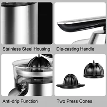 مع ذراع سهل الاستخدام ومخروط مزدوج قابل للتعديل، يمكنك عصر جميع أنواع الحمضيات بكل سهولة، بغض النظر عن حجمها. كما يحتوي على ملف لف الكابل المدمج للمساعدة في التخزين المنظم والمرتب للعصارة.