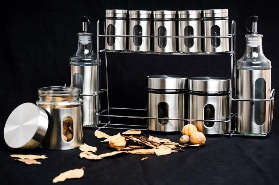 منتجنا هو مجموعة رائعة تتكون من 8 أوعية توابل و 2 زجاجة زيت، وهي مصنوعة من مواد متينة وعالية الجودة. يتم تصنيعها من الزجاج المقاوم للصدأ والمعدن المطلي بالجرانيت عالي الجودة بدرجة الطعام الصحي.