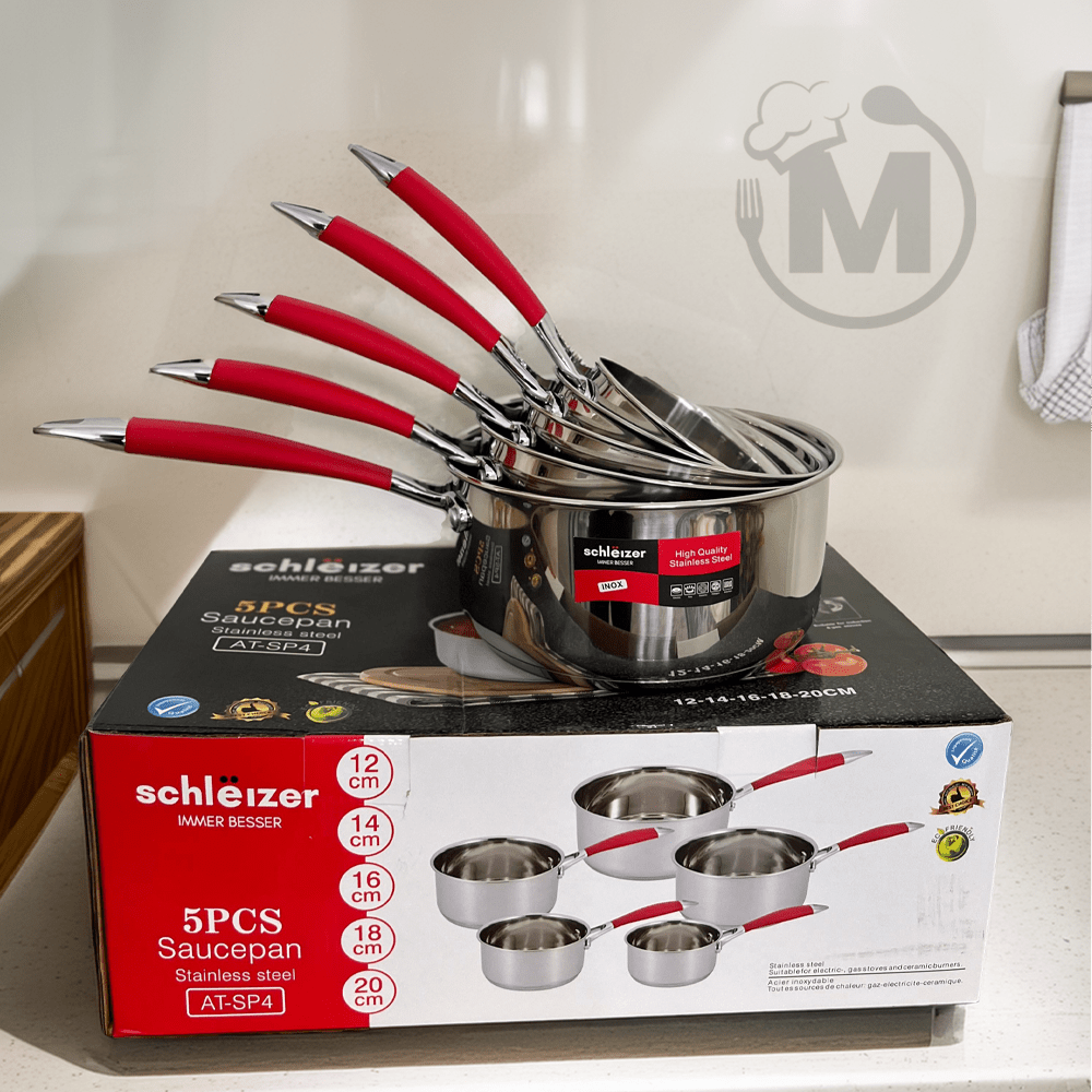 - جودة لا تضاهى ومتانة فائقة: يُصنع طقم شلايزر من الستانلس ستيل المقاوم للصدأ بتكنولوجيا متقدمة تجعل الأواني مقاومة للحرارة العالية والخدوش، ومثالية للاستخدام المتكرر دون أن تفقد بريقها أو خصائصها.
